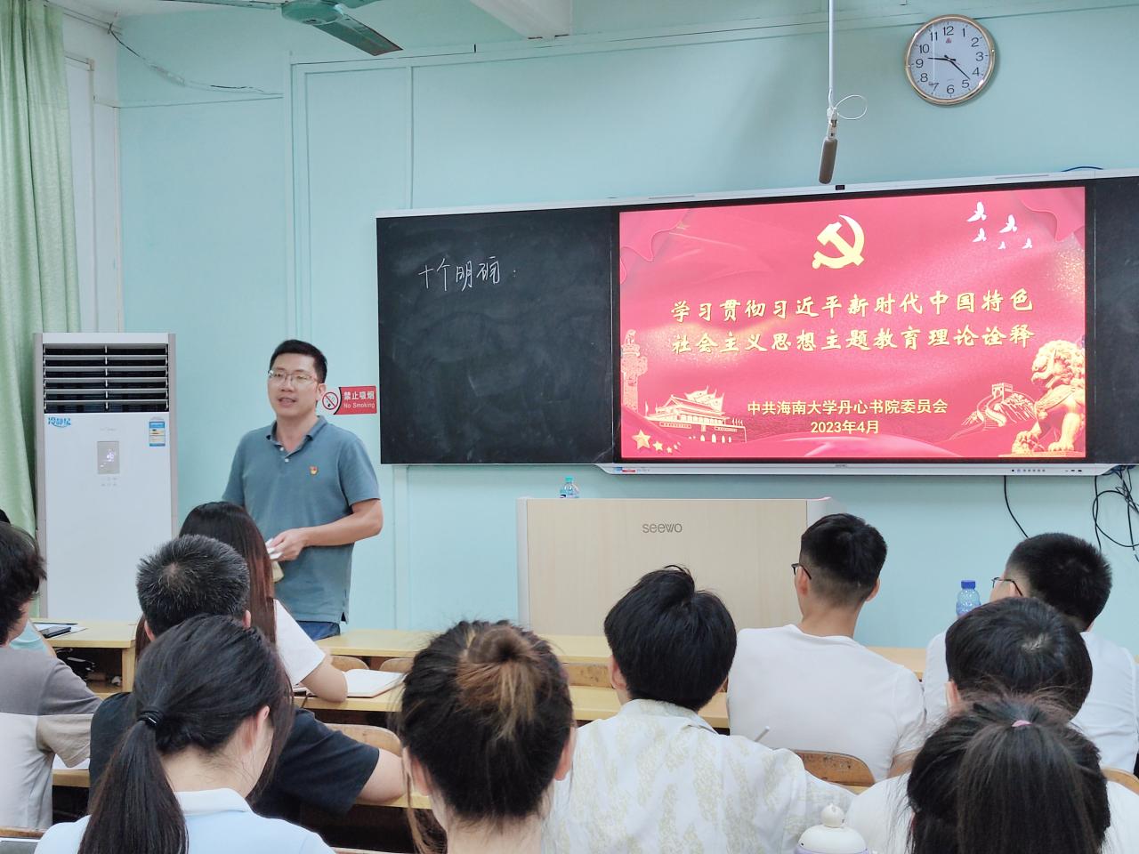 为深入开展学习贯彻习近平新时代中国特色社会主义思想主题教育,扎实推进海洋之神党支部建设与发展,4月23日晚上,hy590海洋之神检测中心在儋州校区3105室开展学习贯彻习近平新时代中国特色社会主义思想主题教育理论诠释暨支部党建提质增效工作交流会,海洋之神党委书记姚天增出席活动,辅导员徐腾,各党支部支委,党小组组长和学生党建联合会学生干部参加活动。